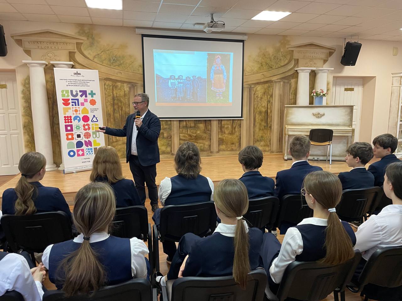 27 ноября 2025 года в рамках научно-популярных мероприятий для базовых школ РАН директор ИГИ УрО РАН (филиал ПФИЦ УрО РАН), член-корреспондент РАН, доктор исторических наук Александр Васильевич Черных выступил с образовательной лекцией для учеников МАОУ «Гимназии №4 имени братьев Каменских» г. Перми.